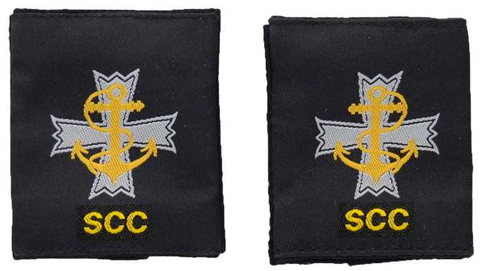 Navy Blue, with white lettering Sea Cadets Corps Curved Badges (Pair)